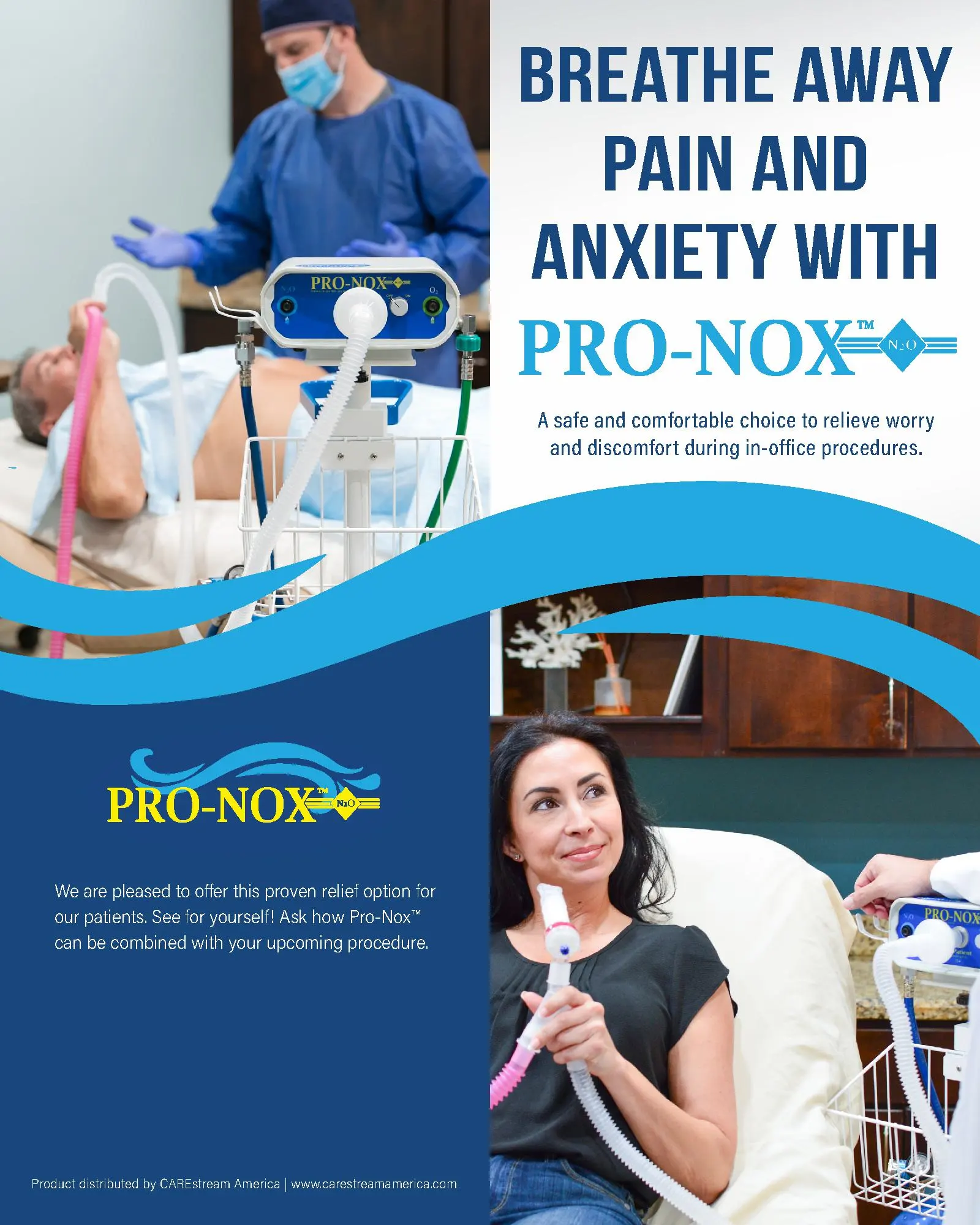 We are pleased to offer a proven relief option for our patients. Ask how Pro-Nox can be combined with your upcoming procedure.